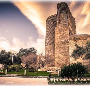 Девичья башня, известнейший памятник восточной архитектуры, является одной из самых популярных мест в Азербайджане, а также символом страны. Высота башни 28 метров, диаметр 16 метров, толщина стен 4.5-5 метров, дата постройки неизвестна.