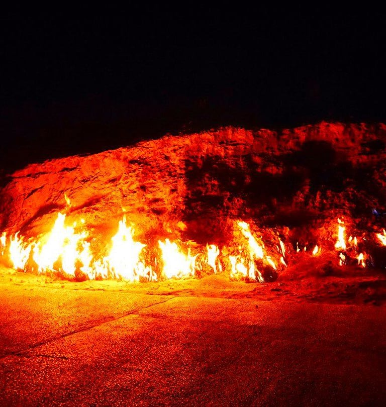 В переводе Горящая гора, залежи газа находятся на поверхности земли и веками горят, многие тысячелетия притягивали паломников со всех регионов.